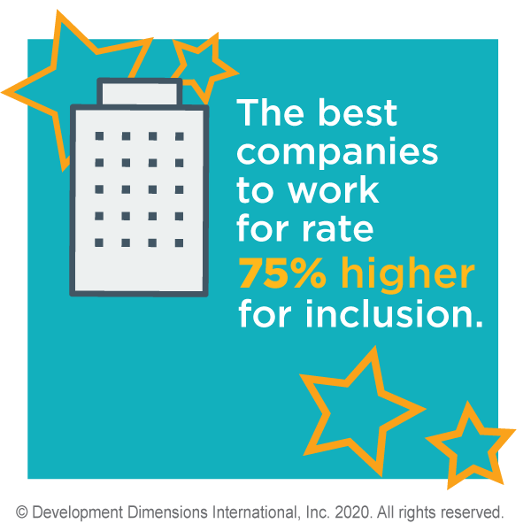 Our enquiry showed that companies rated as "Best Places to Piece of work" scored 75% college for having an inclusive culture. Why? Because leaders who know how to create an inclusive environment on a daily basis create a better work environment for everyone, regardless of background.